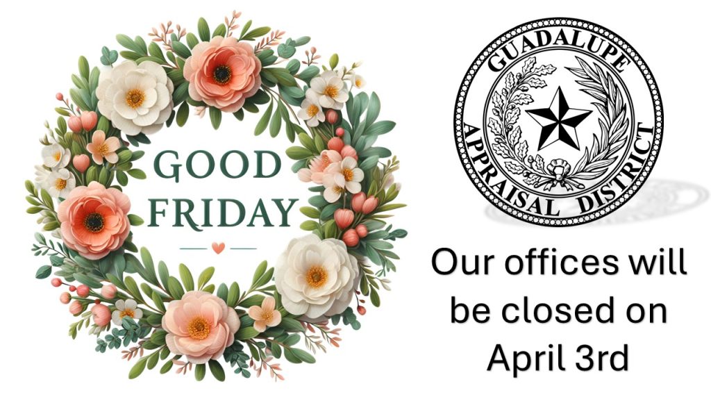 Checkout the Guadalupe Appraisal District’s Facebook page! We will be using this page for information dissemination, to include: Office Closures, Exemption Information, Tax Information Updates, Deadline Reminders, Protest How-To’s, and much more.